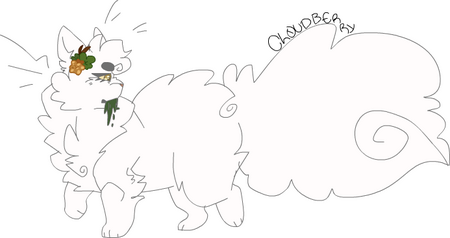 A pale yellow molly with brown and white accents, floppy ears, a tucked tail, violet-pink eyes, always wears berries and leaves in her fur. She has berry-colored dapples on her flank and hind legs. The strawberry blossom. NPC.